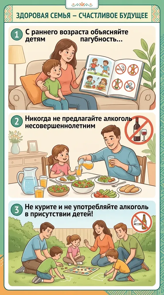 Объясняйте вред курения, алкоголя, наркотиков. Не подавайте дурной пример.