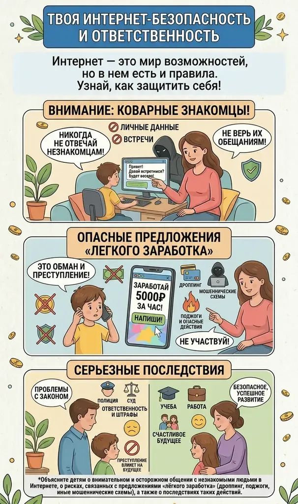 В интернете: остерегайтесь незнакомцев и «лёгкого заработка».